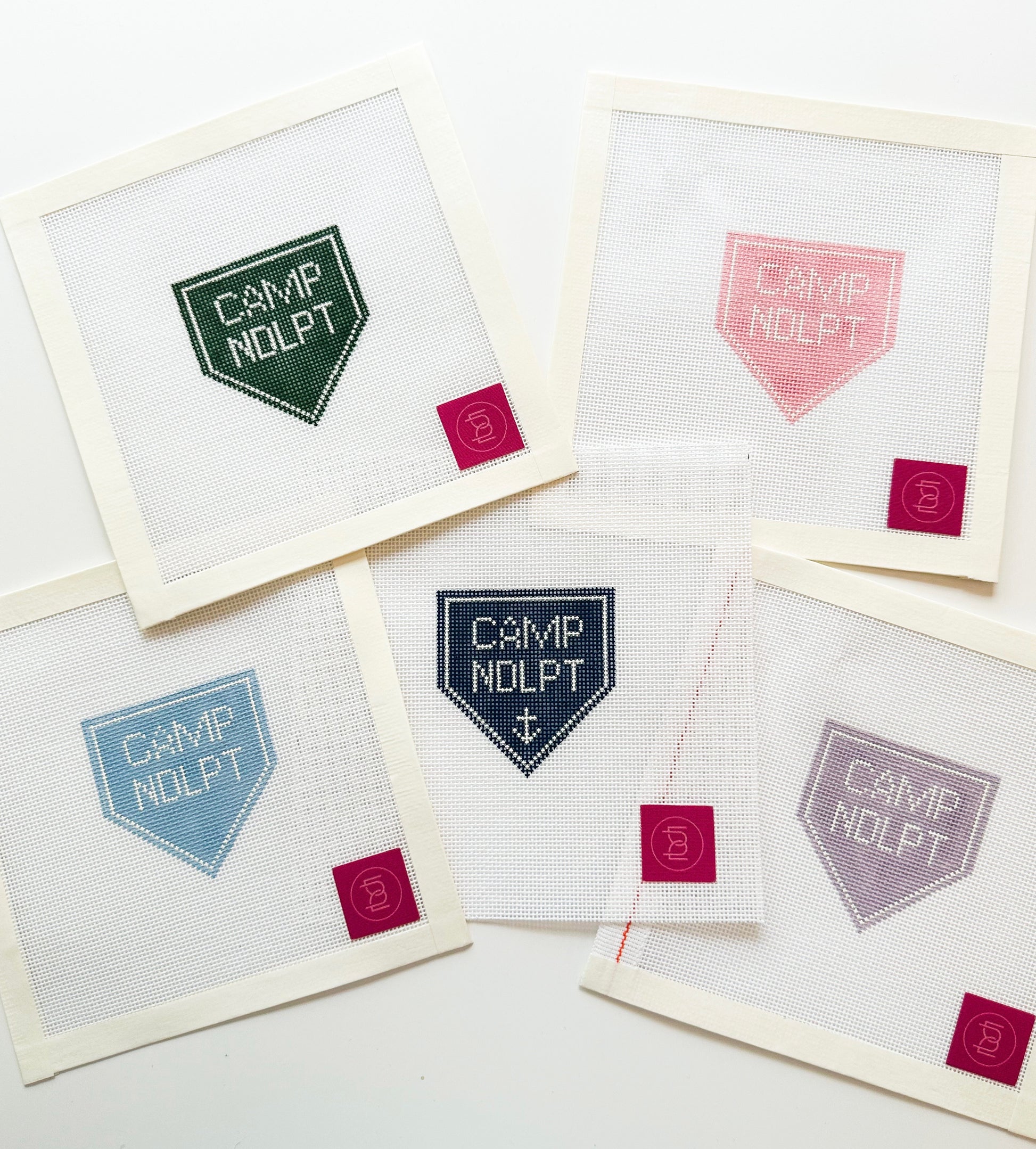 This adorable mini pennant canvas features our Camp NDLPT design! Finish with an extra long loop to secure it to your favorite bag handle! Available in your choice of classic green, pink, blue, or lavender!