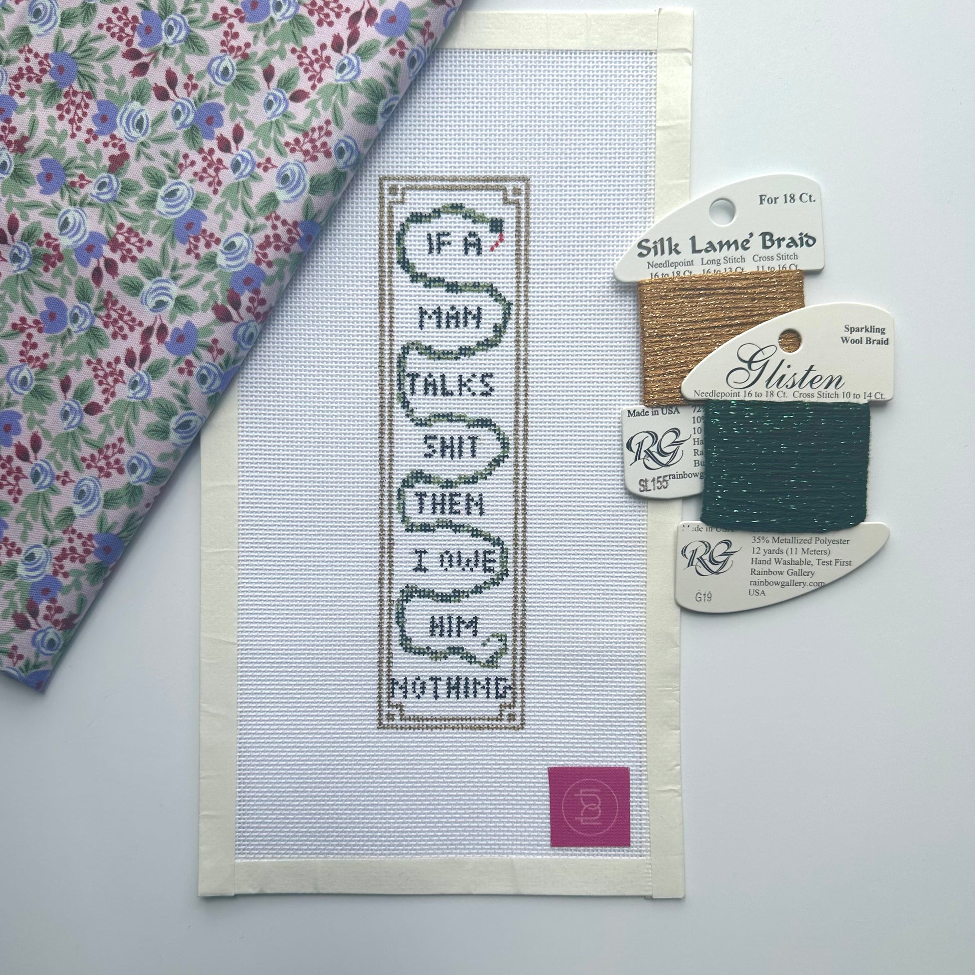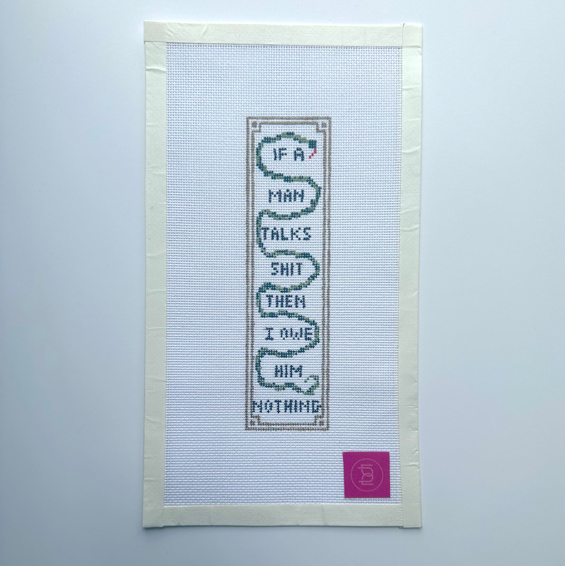 Hand painted on 18 mesh canvas.